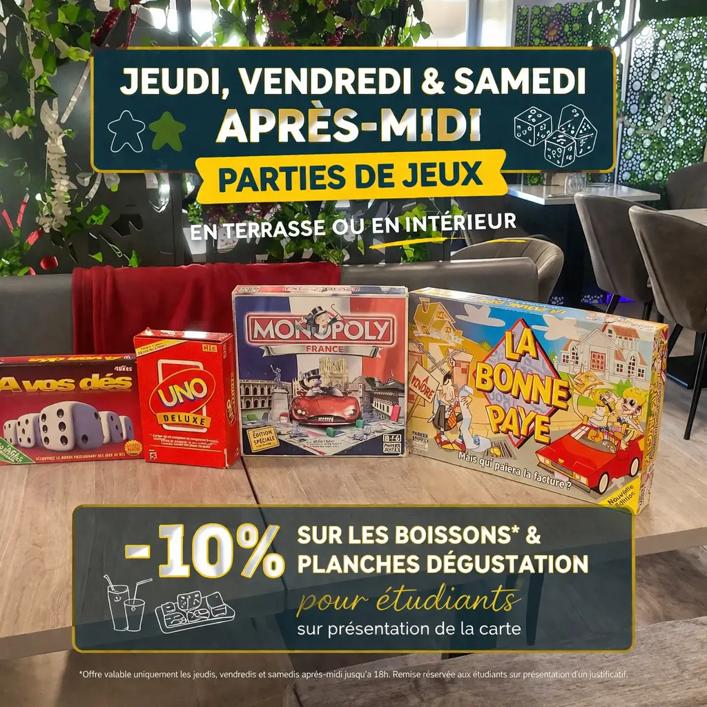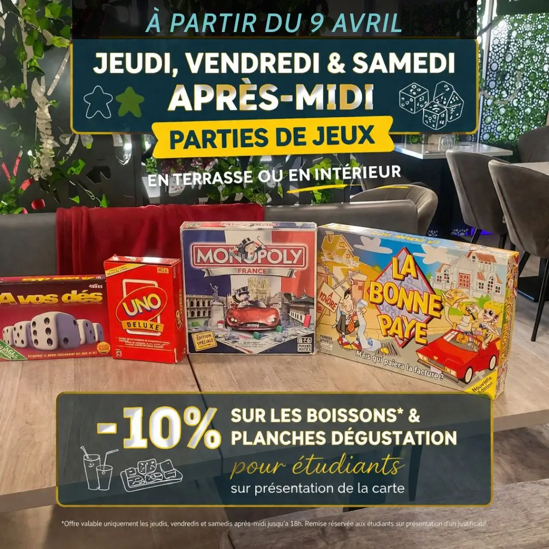 MODIFICATION D’HORAIRE : À partir du 9 avril, ouverture Du jeudi au samedi uniquement : 8h30 → 23h NON-STOP, La Very Table évolue pour vous proposer une expérience différente… plus libre, plus conviviale, pour des Après-midi JEUX & détente